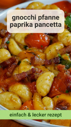 Diese schnelle Gnocchi Pfanne mit Pancetta und Paprika ist genau das Richtige, wenn du in kurzer Zeit ein herzhaftes und aromatisches Gericht zaubern möchtest. Die Kombination aus knusprigem Pancetta, frischer Paprika und saftigen Kirschtomaten sorgt für ein vollmundiges Geschmackserlebnis, das sowohl sättigend als auch unkompliziert ist.