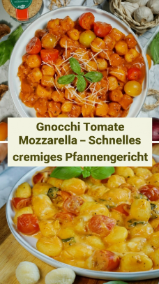 Gnocchi mit Tomatensoße sind ein echter Klassiker. Die Kombination aus cremiger Soße, frischen Tomaten und geschmolzenem Mozzarella sorgt für ein harmonisches Aroma, das sowohl Erwachsene als auch Kinder begeistert. Obwohl das Gericht komplett vegetarisch ist, wirkt es dank der ausgewählten Zutaten sehr sättigend und vollmundig.