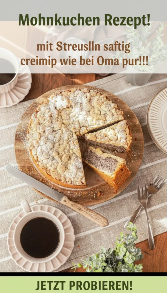Mit diesem traditionellen Mohnkuchen Rezept mit Streuseln gelingt dir ein wunderbar saftiger Kuchen, der geschmacklich sofort Kindheitserinnerungen weckt. Locker, cremig, leicht nussig und gekrönt von knusprigen Streuseln – genau so, wie man ihn von Oma kennt und liebt.
