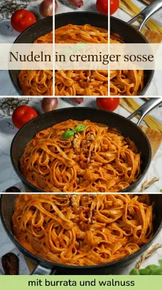 Du suchst ein besonderes Rezept für Nudeln in cremiger Soße, das ohne Sahne auskommt und trotzdem unglaublich vollmundig schmeckt? Dann wirst du dieses Gericht lieben. Die Kombination aus getrockneten Tomaten, frischem Gemüse, Burrata und knackigen Walnüssen sorgt für eine intensive, ausgewogene Pasta-Soße, die sowohl cremig als auch aromatisch ist.