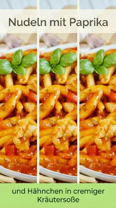 Wenn du ein schnelles und gleichzeitig unglaublich leckeres Nudelgericht suchst, dann sind diese Nudeln mit Paprika Kräuter Soße und Hähnchen genau das Richtige für dich. Zartes Hähnchen, frische Paprika und aromatische Kräuter ergeben zusammen eine cremige und geschmackvolle Mahlzeit.