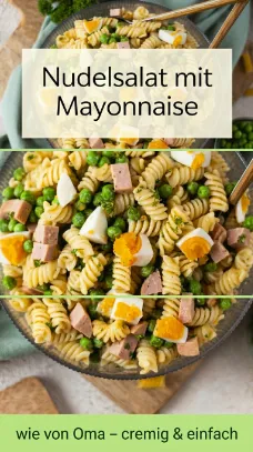 Dieser Nudelsalat mit Mayonnaise ist ein echter Klassiker, der sofort Erinnerungen an gemütliche Familienfeste weckt. Auch wenn man kein großer Fan von Mayonnaise ist, überzeugt dieses Rezept durch seinen cremigen Geschmack und seine einfache Zubereitung.