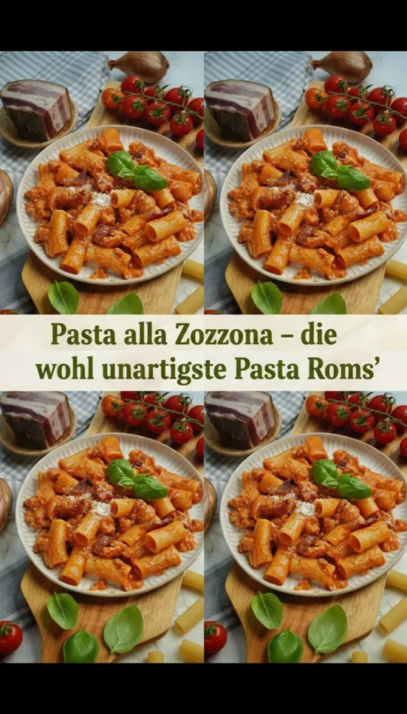 Pasta alla Zozzona ist eines der reichhaltigsten und intensivsten Pastagerichte der römischen Küche. Der Name bedeutet übersetzt „die Schmutzige“ oder „die Unordentliche“ und beschreibt die mutige Kombination mehrerer klassischer Pastasaucen in einem Gericht.