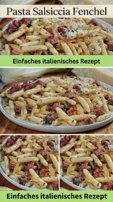 Diese Pasta mit Salsiccia und Fenchel ist ein echtes Wohlfühlgericht aus der italienischen Küche, das sich perfekt für den Feierabend eignet. Die Kombination aus würziger Salsiccia und aromatischem Fenchel sorgt für ein intensives Geschmackserlebnis, das trotz einfacher Zubereitung beeindruckt. Mit wenigen, aber hochwertigen Zutaten entsteht ein Gericht, das sowohl rustikal als auch elegant ist.