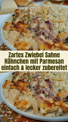 Zartes Zwiebel Sahne Hähnchen mit Parmesan einfach & lecker zubereitet